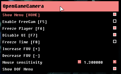- Fixed an issue that caused the UI to disappear forever when enabling and disabling Freecam quickly.