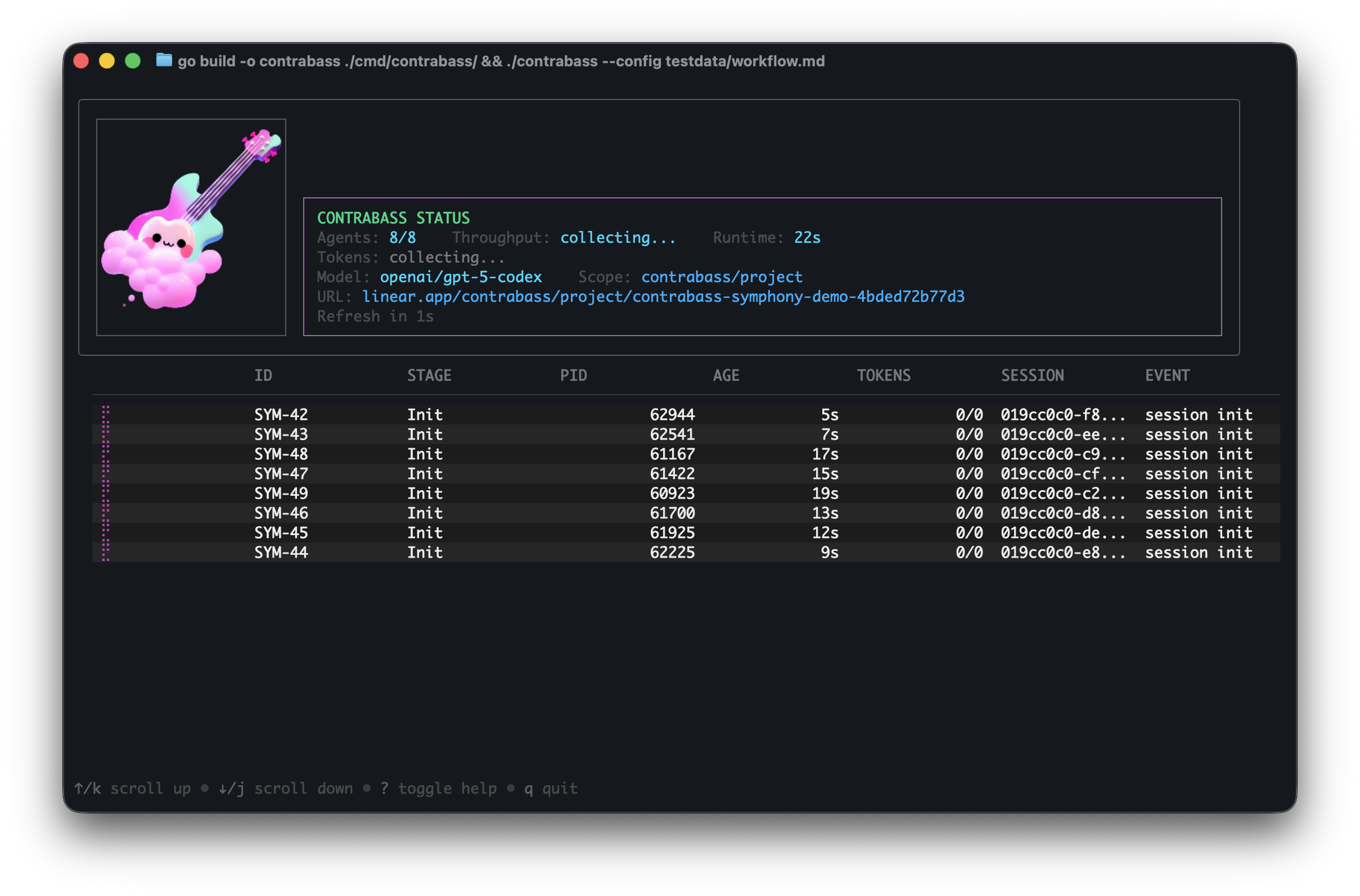 ./contrabass --config testdata/workflow.demo.mdLINEAR_API_KEY=your-linear-token \
