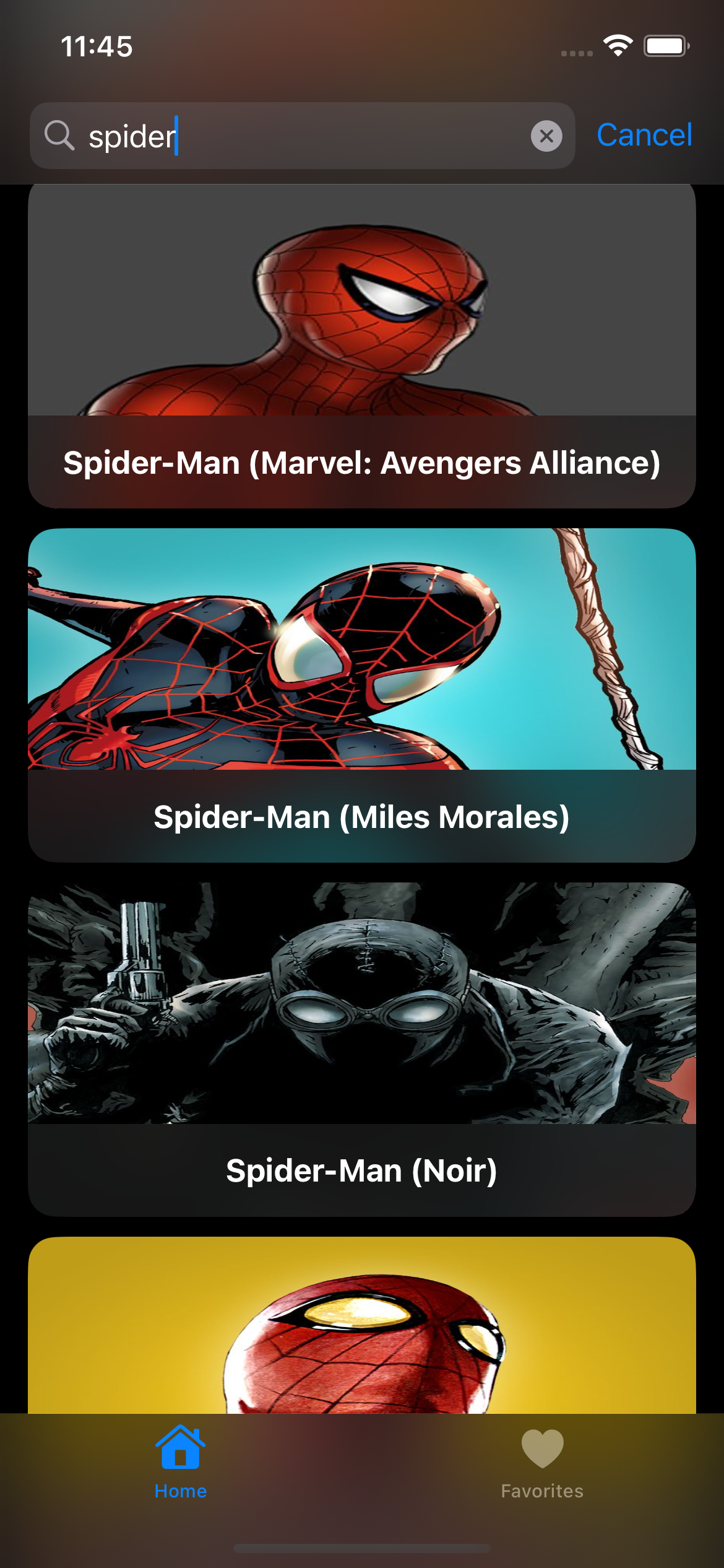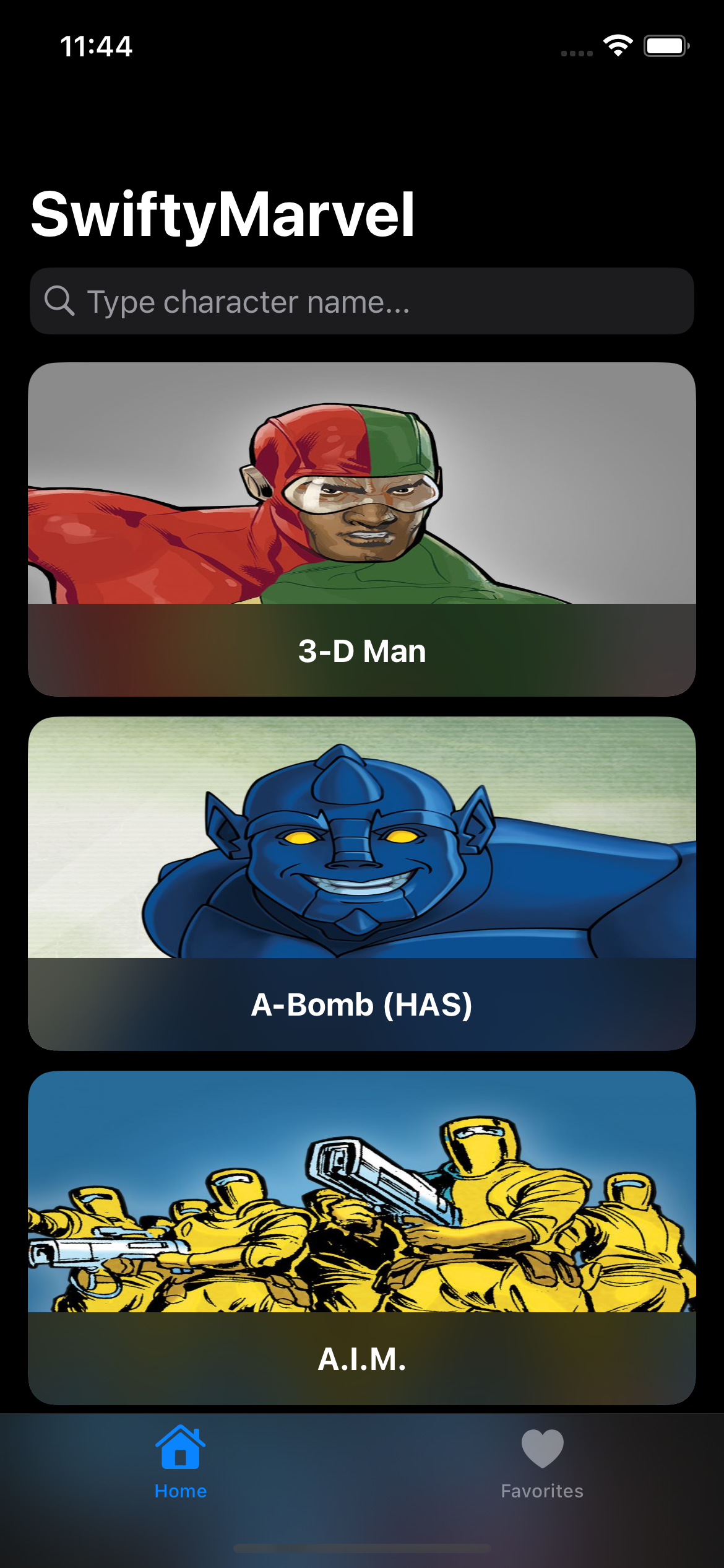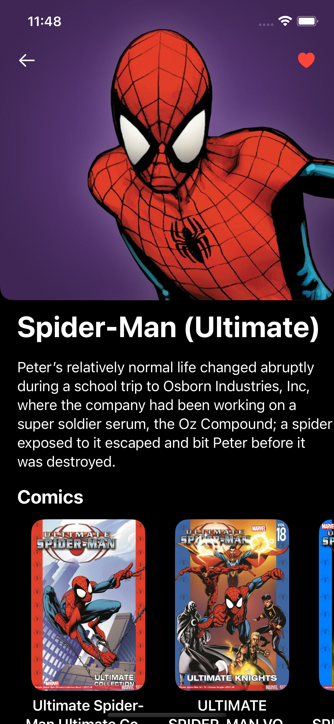 SwiftyMarvel is a SwiftUI app that uses the Marvel API to display a list of Marvel characters and their details. You can browse through hundreds of heroes and villains from the Marvel universe, see their comics, and learn more about their powers and abilities.