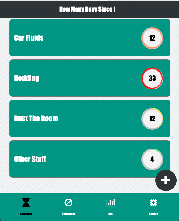 With How Many Days Since, you can create a routine tracker by giving the task a title, setting the duration, and adding it to your list. At a glance, you can see which tasks need to be completed by checking the color and progress of the circular progress bar.